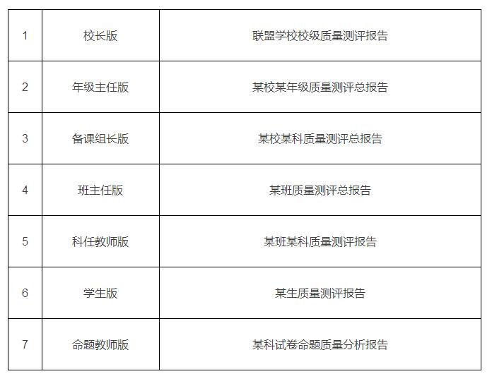 《质量测评报告》,从7个层面、5~10个维度对参测对象进行剖析,不仅指出参测对象的优势和不足,而且揭示形成优势和造成不足的原因;不仅显示参测对象的考试成绩,同时分析指出此成绩在整个联盟学校中的位置。此外,《质量测评报告》还可以根据学生测试的情况为老师提供更具针对性的班级个性化教学解决方案,为学生提供更具针对性的个性化学习解决方案。