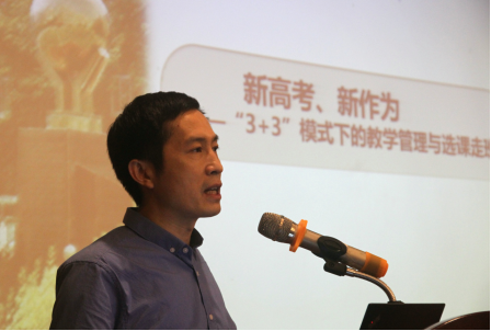 山东省实验中学教导处主任丁兆华作了主题为《新高考、新作为——“3+3”模式下的教学管理与选课走班》的专题报告,丁主任分别就新高考模式下的课程构建,选课走班方案及评价方案作了详细介绍,参会嘉宾认真聆听并积极参与交流。